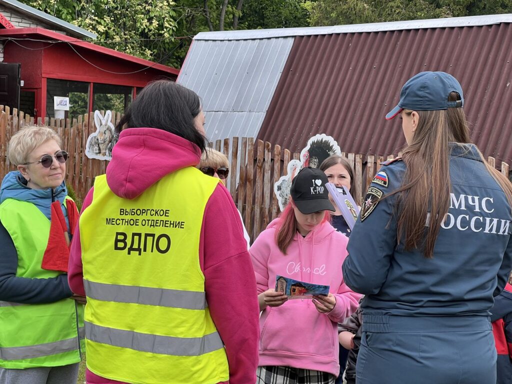 Сотрудники отдела надзорной деятельности и профилактической работы Выборгского района ГУ МЧС России по ЛО совместно с Выборгским местным отделением ВДПО ЛО провели профилактическую беседу на тему «мои безопасные каникулы» и тренировочную эвакуацию в детском оздоровительном лагере МУДО «Станция Юных Натуралистов» города Выборга.