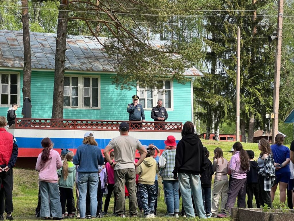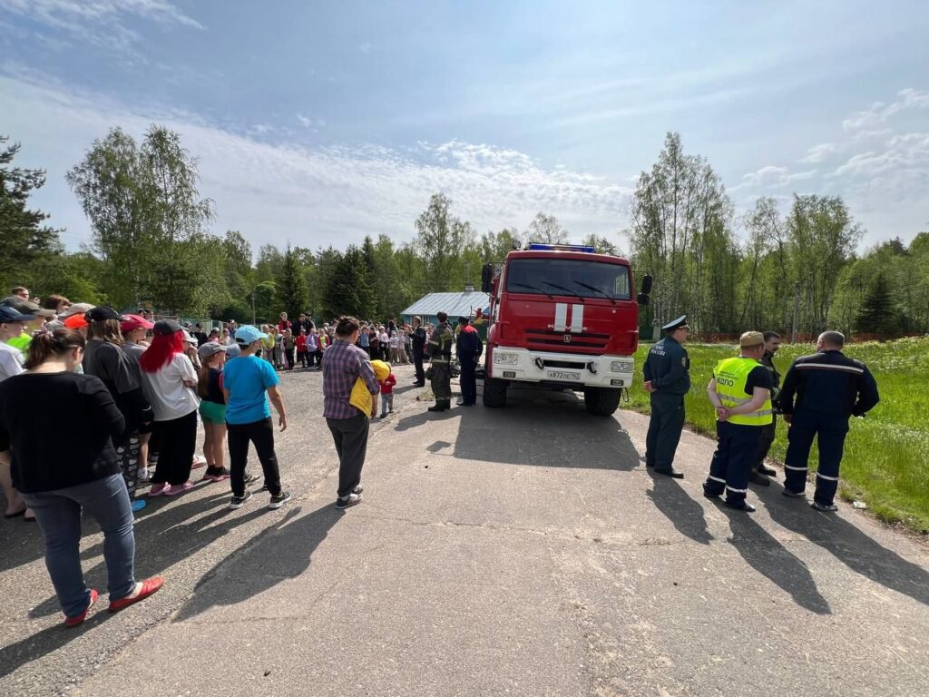 После беседы прошла тренировочная эвакуация: дети и персонал лагеря отработали алгоритм действий при условном пожаре. Всё прошло организованно и без заминок – уложились в нормативное время!