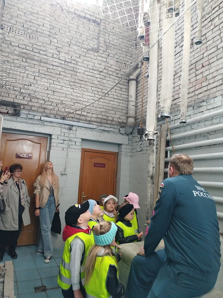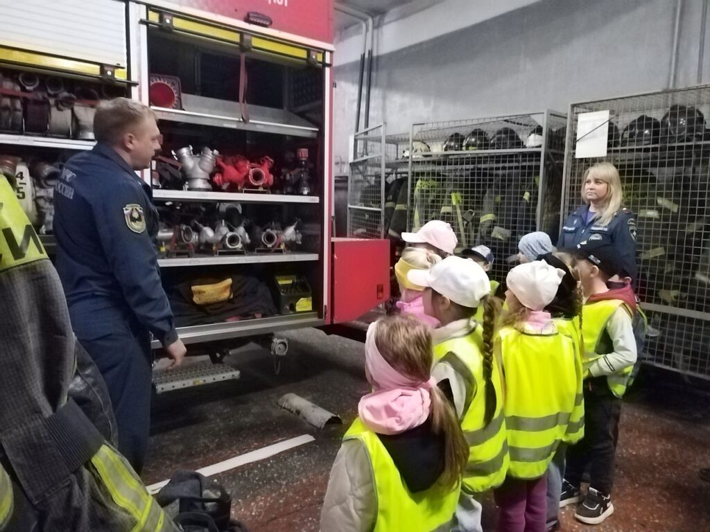 Сотрудники пожарной части рассказали ребятам о работе пожарных, о том, что и как расположено в боевой пожарной машине. Дали ребятам возможность все посмотреть и руками потрогать. Можно было посидеть в пожарной машине, но с соблюдением техники безопасности. Все-таки экскурсия экскурсией, но соблюдать все правила необходимо всегда. В том числе и по пожарной безопасности. Об этом уже напомнили мы.