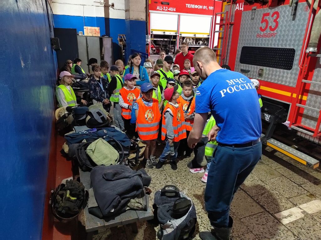 Воспитанники пришкольного лагеря с МБОУ «СОШ № 6» поселка Калинино города Выборга отправились на познавательную экскурсию в местную 53 пожарно-спасательную часть. Их встретили не только сотрудники МЧС, но и представитель Выборгского местного отделения Всероссийского добровольного пожарного общества. Сразу же среди детей определились желающие стать помощниками Юным Добровольным пожарным и помогать в проведении экскурсии.