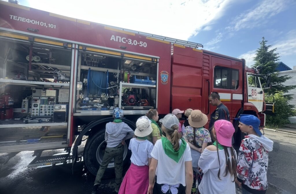 Для воспитанников двух отрядов пришкольного лагеря Ушакинской средней общеобразовательной школы № 1 состоялись увлекательные и познавательные экскурсии в пожарно-спасательную часть № 86, организованные при поддержке сотрудников отдела надзорной деятельности и профилактической работы Тосненского района, а также местного отделения ВДПО ЛО.