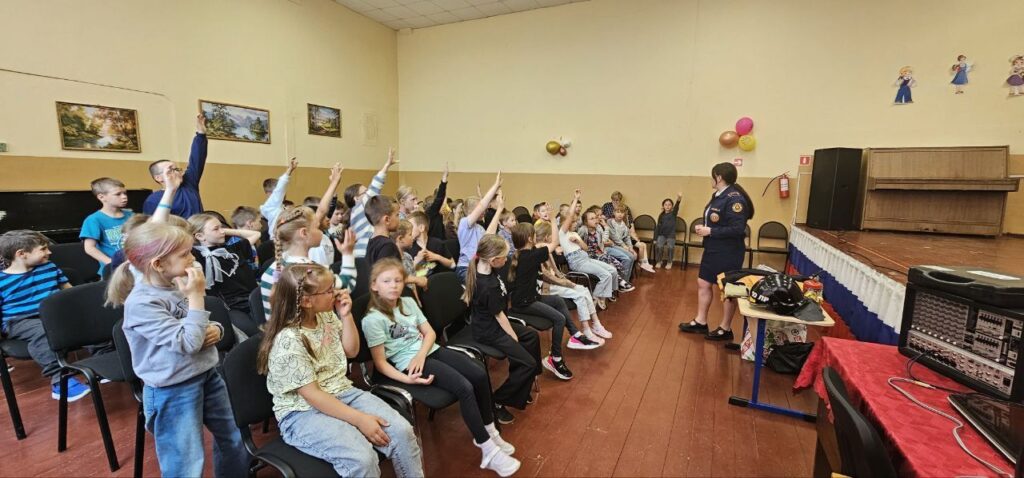 27. 06. 2025 г. Инструктор по противопожарной профилактике Ломоносовского местного отделения ВДПО ЛО Ахмадуллина О.В. провела профилактические занятия с детьми, находящимися в пришкольном лагере «Территория детства».