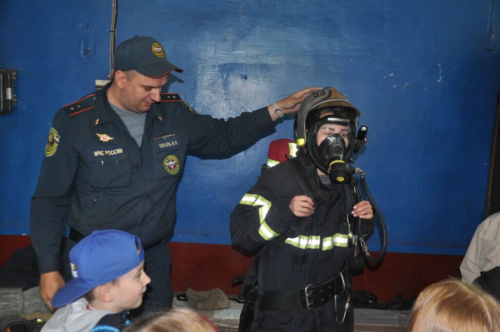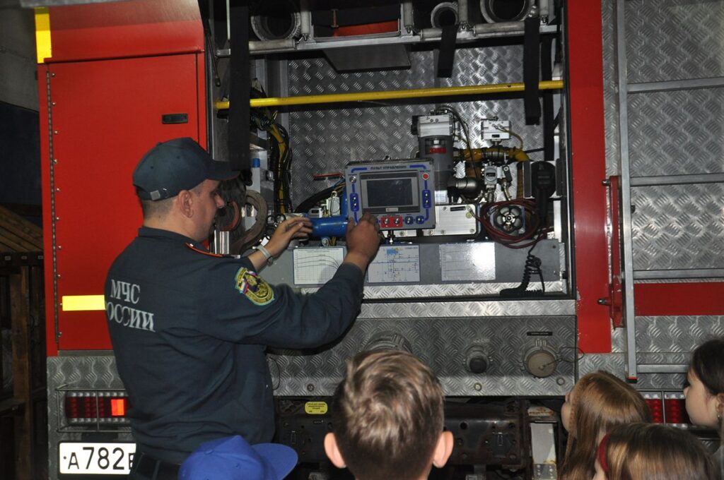 Одним из самых запоминающихся моментов была возможность посмотреть на пожарные машины изнутри. Ребята даже смогли примерить каски и надеть защитные костюмы!