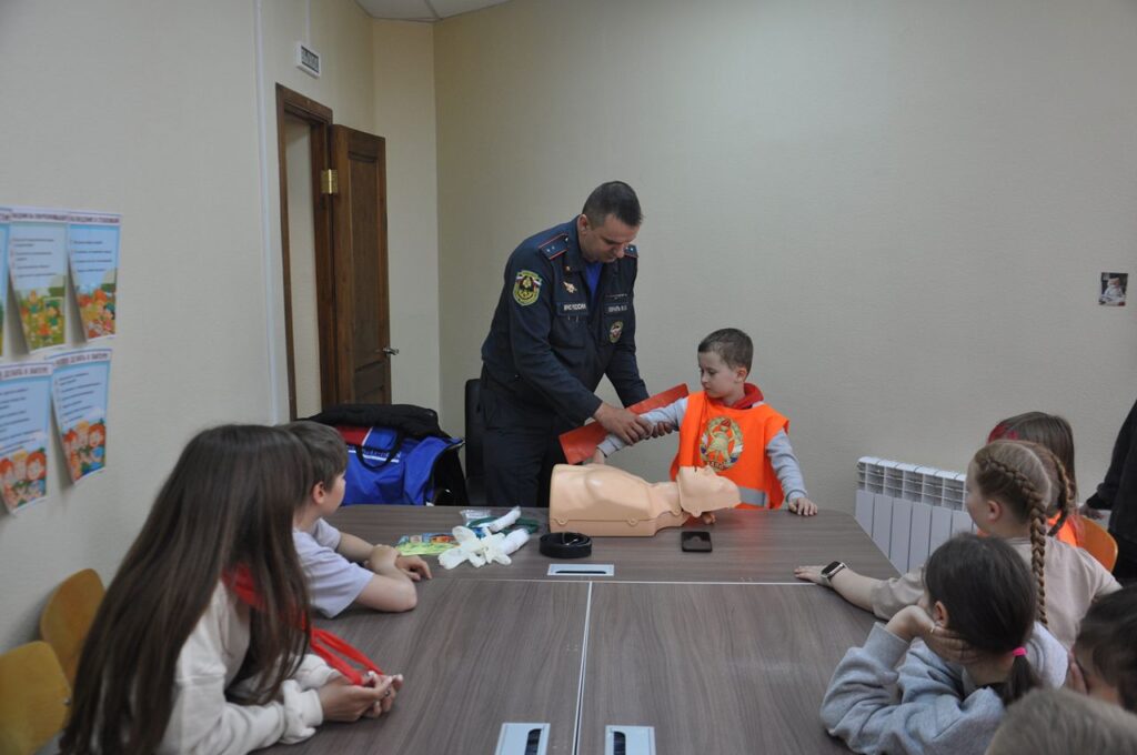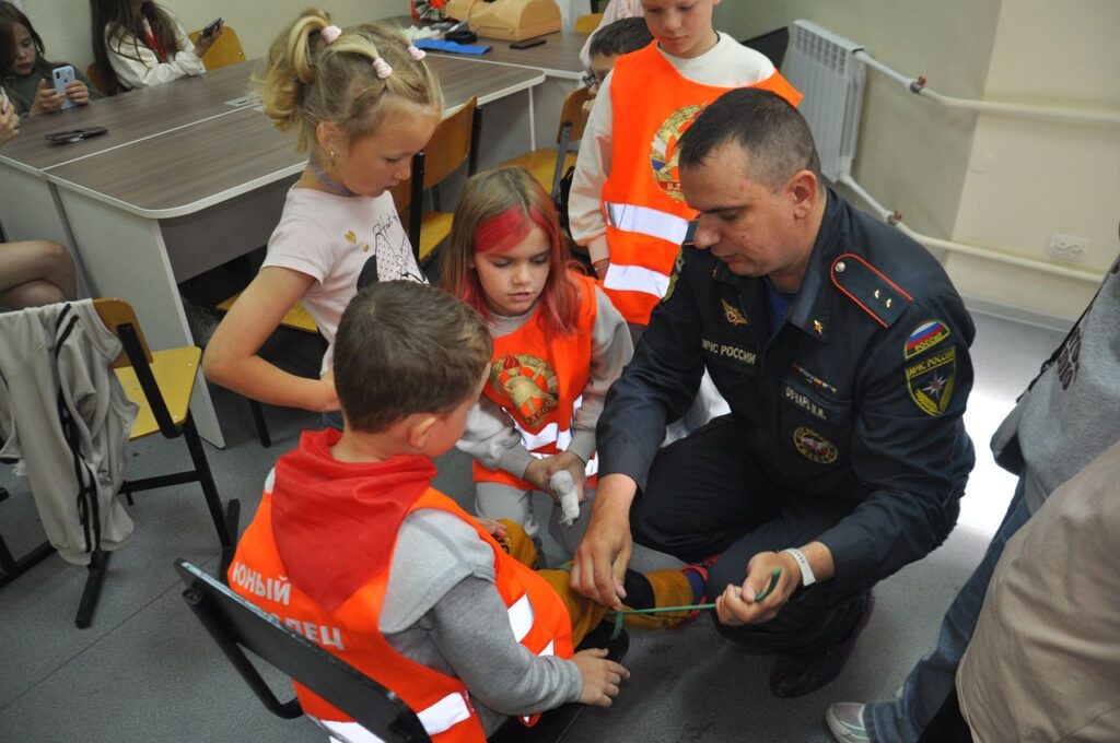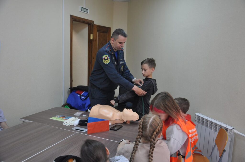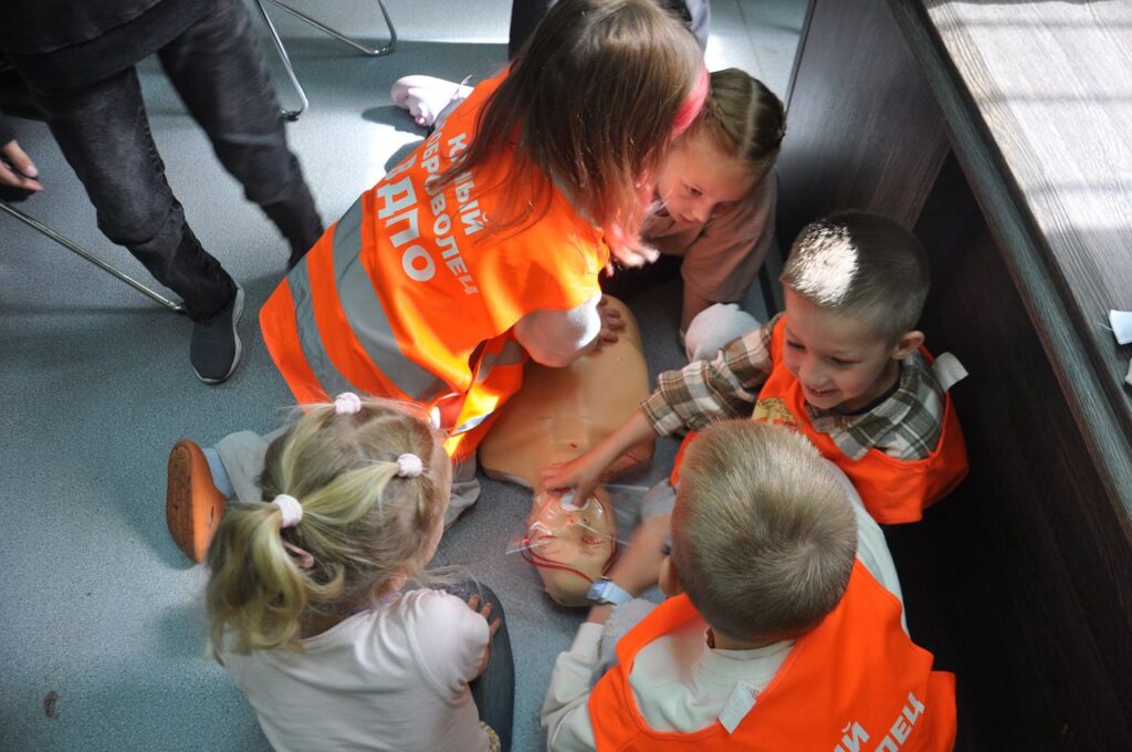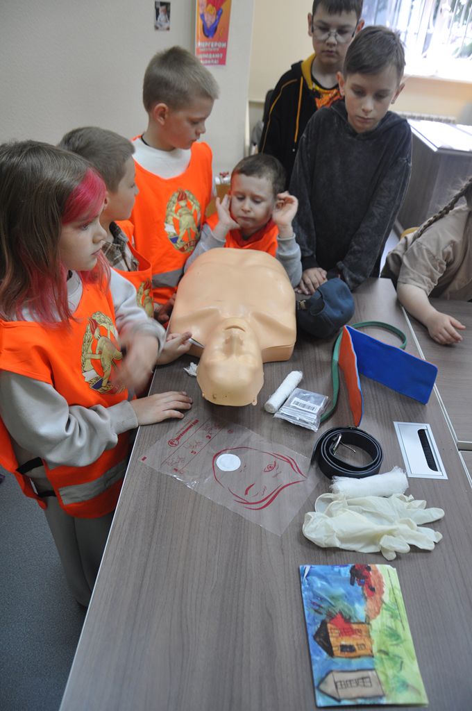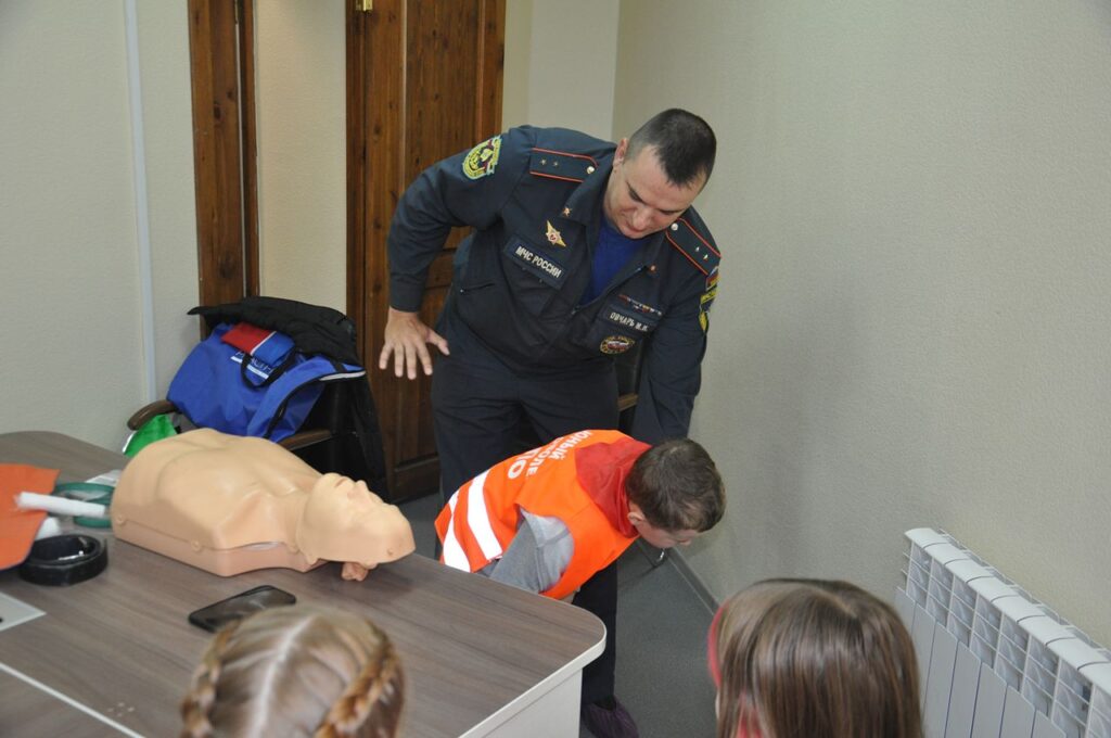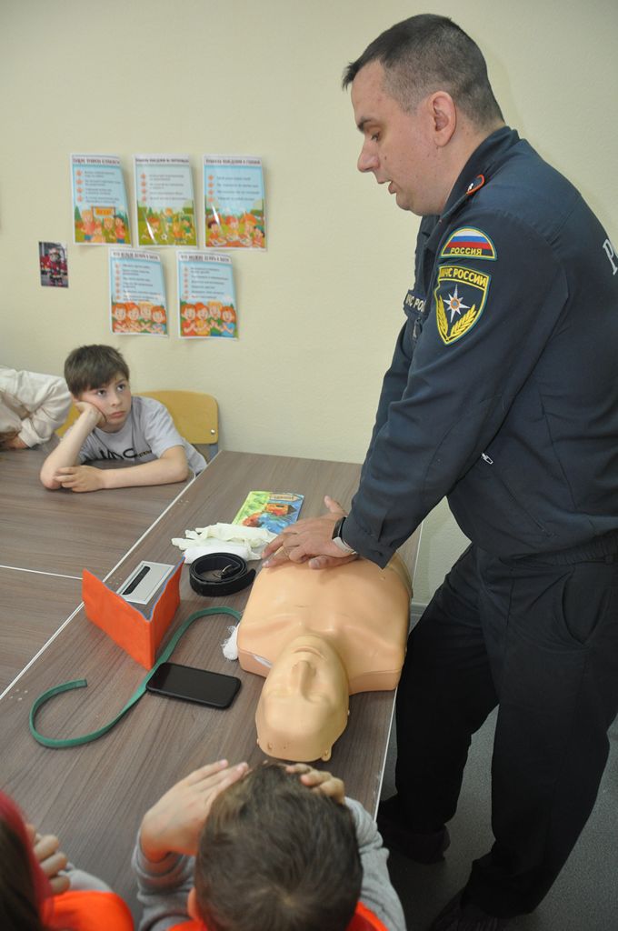Вместе с представителем из ВДПО ЛО, урок проводил прапорщик внутренней службы Овчарь Максим Игоревич, командир отделения 53 пожарно-спасательной части. Он рассказал о реанимационных действиях, показывал, как правильно накладывать жгут и давящую повязку, а также рассказал и показал, как спасти человека, если он поперхнулся. В качестве профилактики детям рассказали и показали, как обрабатывать порезы и раны, как останавливать кровотечение, а также как правильно вызвать скорую помощь. Ребята узнали о видах детского травматизма на улице, дома и в школе.