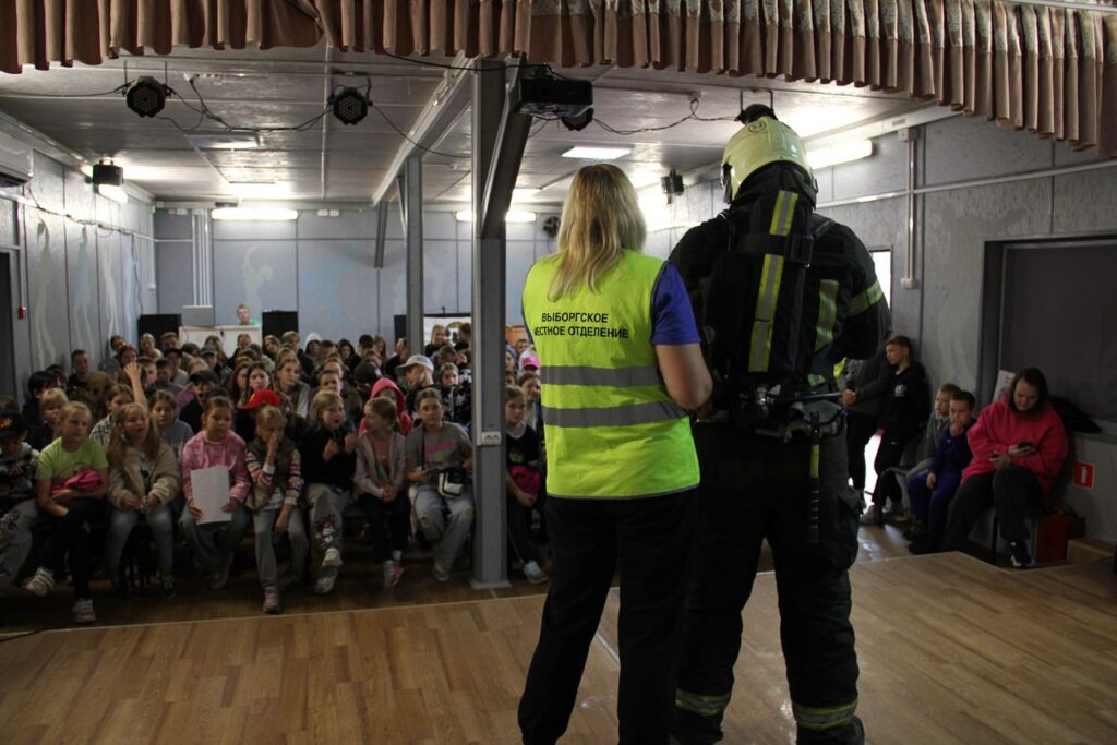 В гости к ребятам приехали сотрудники МЧС и Выборгское местное отделение ВДПО ЛО чтобы рассказать о правилах пожарной безопасности и показать как проходит их работа.