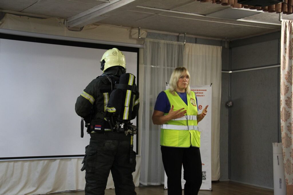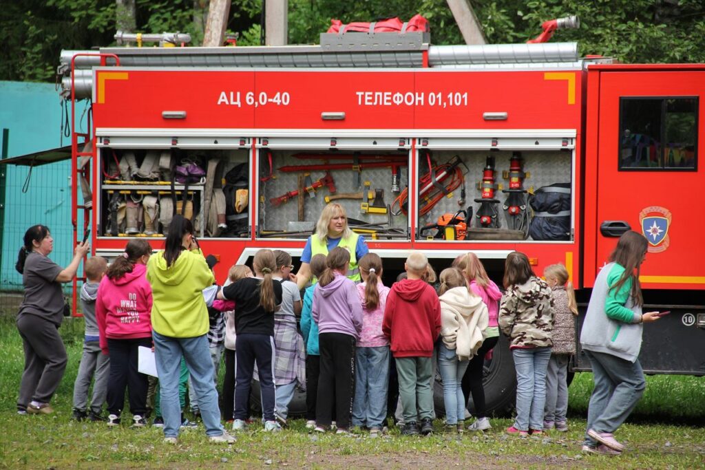 Самым ярким моментом встречи стала демонстрация пожарного автомобиля. Ребята смогли увидеть оборудование, узнать о его назначении и даже примерить боевую одежду пожарного.