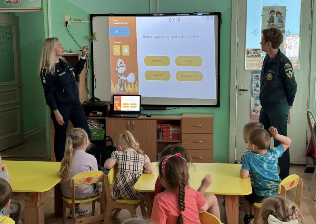 Ребятам предложили пройти викторину под названием «Шалость с огнём», где в игровой форме были представлены ситуации, провоцирующие на опасные действия: поджог травы, игра со спичками, неосторожное обращение с зажигалками. Дошколята проявили отличные знания и продемонстрировали правильные реакции на все вопросы. На несколько особенно сложных заданий детям помогли ответить гости – сотрудники отдела надзорной деятельности и профилактической работы Тосненского района и представители местного отделения ВДПО ЛО.