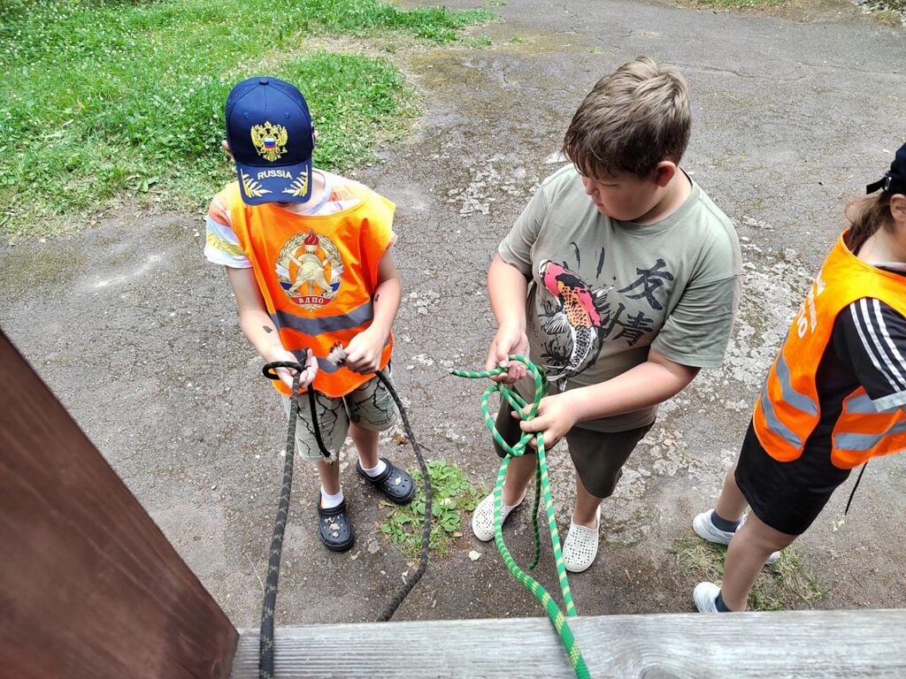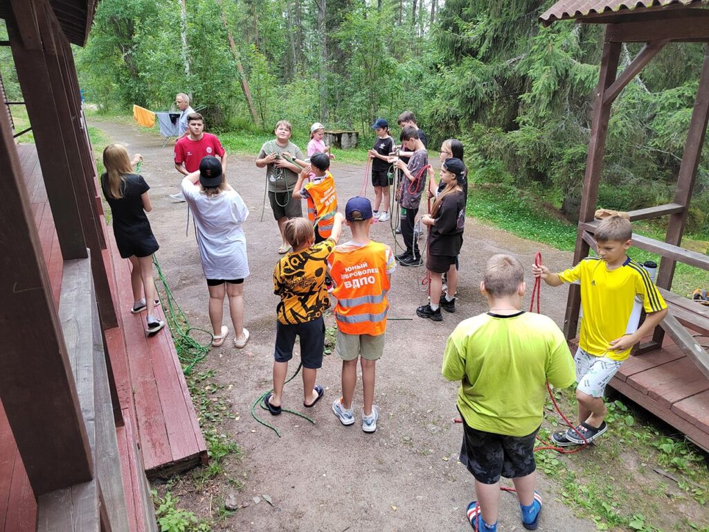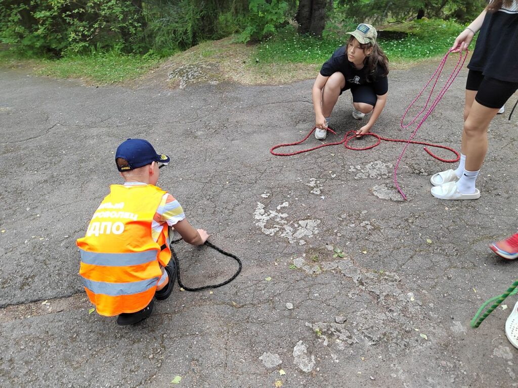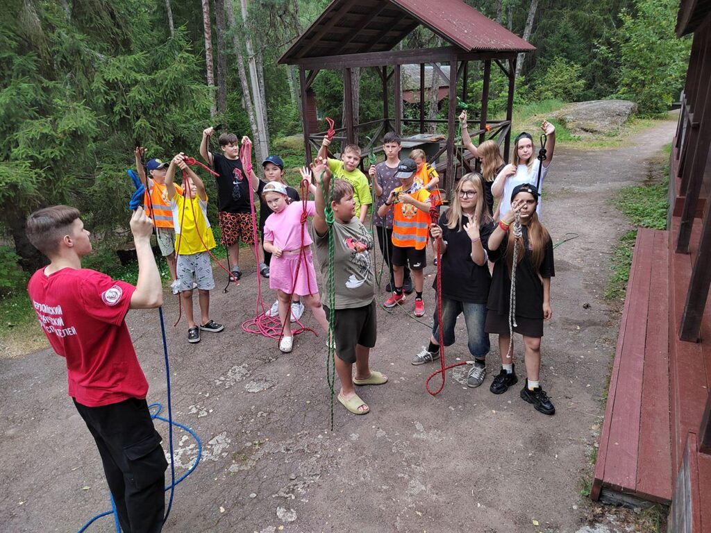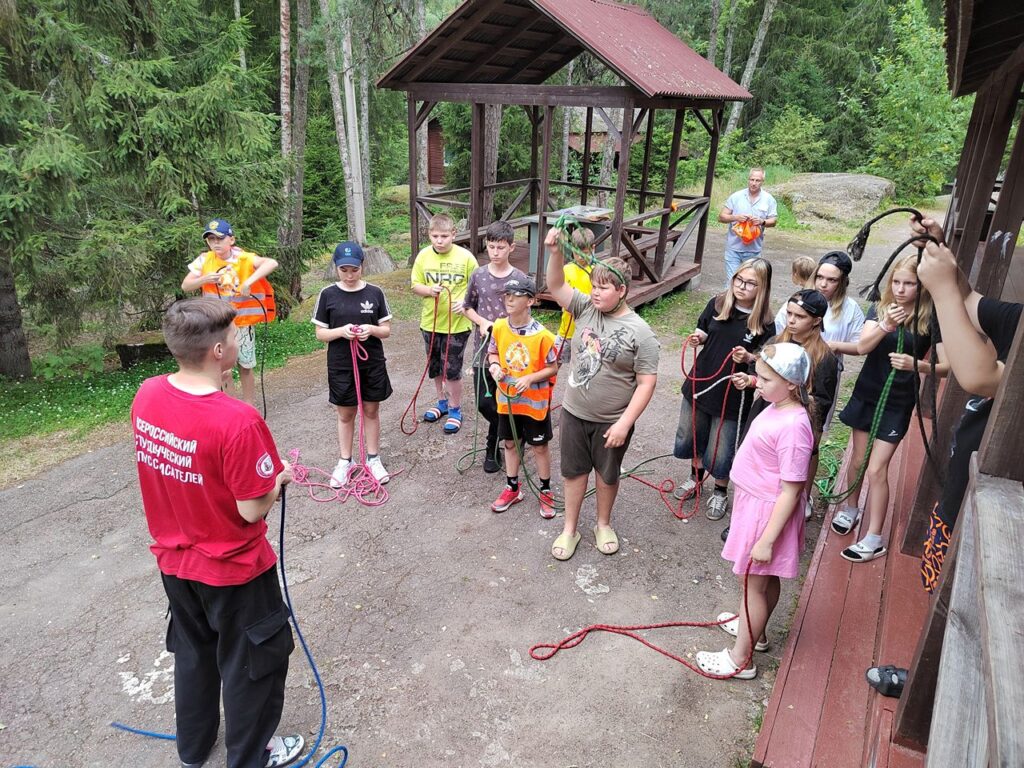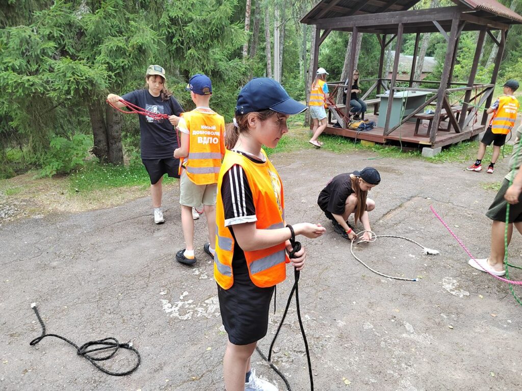 Сегодня Юные добровольцы Выборгского местного отделения ВДПО ЛО приехали в детский оздоровительный лагерь Выборгского района «Зелёный остров», где состоялось познавательное мероприятие – тренировка вязки спасательных узлов.