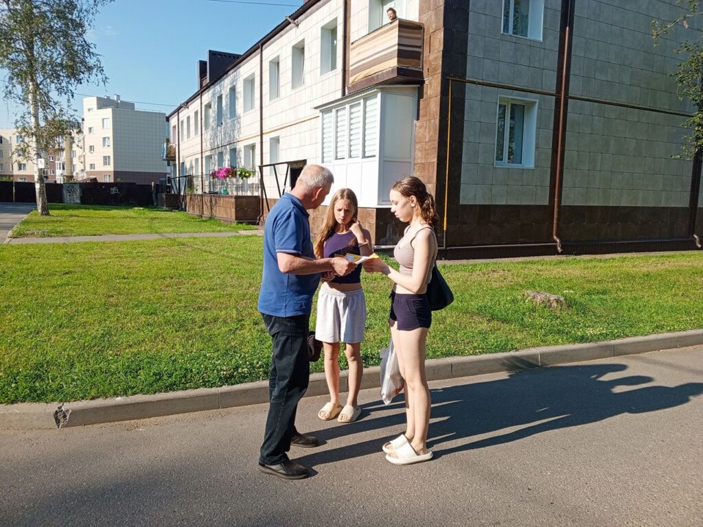 В поселке Дубровка инструктором противопожарной профилактики отряда Государственной противопожарной службы Всеволожского района Габрильянц Натальей и заместителем председателя совета местного отделения ВДПО ЛО Миклиным В.Н. совместно с ведущим специалистом отдела профилактики комиссии по делам несовершеннолетних и защите их прав Коноваловым Артемием, и специалистом отдела профилактики социального сиротства Муриной Светланой проведен вечерний противопожарный рейд.