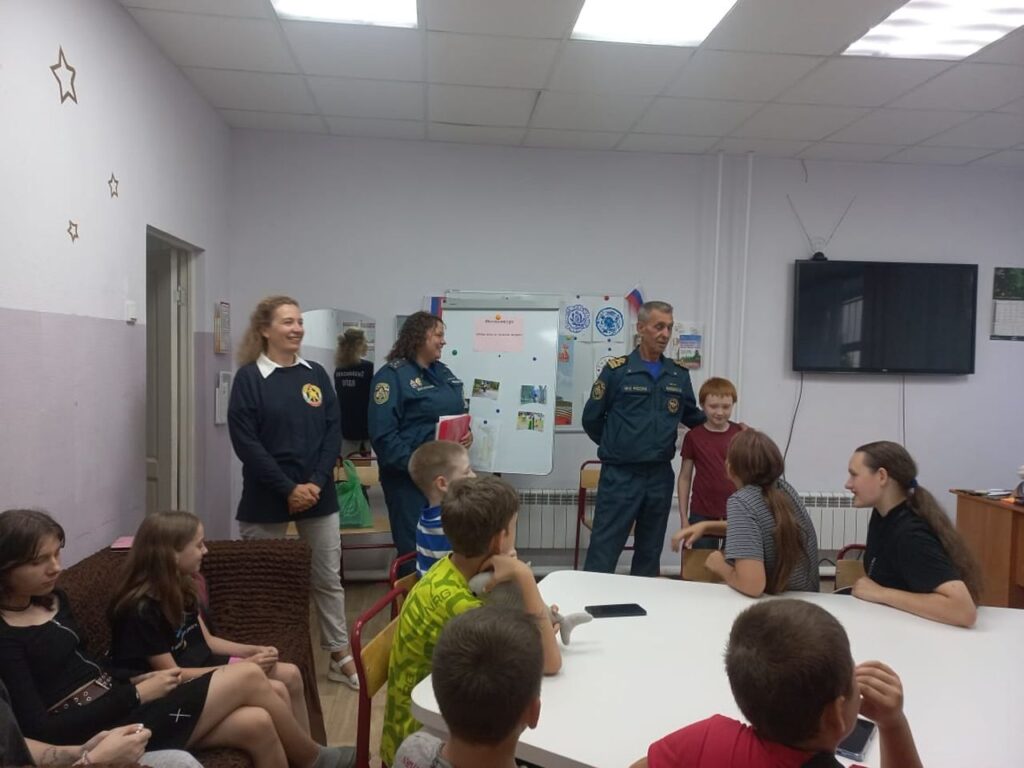 На этой неделе государственным инспектором Тихвинского района по пожарному надзору Федотовой Ольгой совместно с инспектором по маломерным судам Тихвинского участка центра ГИМС Ковалевским Николаем и представителем Тихвинского МО Ленинградского областного отделения ВДПО Николаенко Анастасией проведено профилактическое занятие среди детей разного возраста в здании Ленинградского областного государственного бюджетного учреждения «Тихвинский комплексный центр социального обслуживания населения» по адресу: г. Тихвин, 1 микрорайон, дом 38.