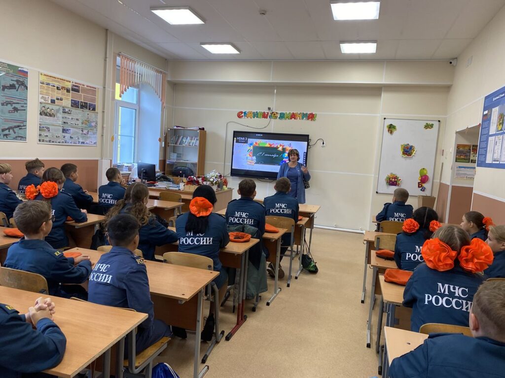 После торжественного мероприятия ребята разошлись по классам. Здесь мы поприветствовали ребят, поздравили с началом нового учебного года, пожелали успехов в учебе и особенно в освоении пожарного дела. Также мы пообещали, что до конца всего проекта, мы обязательно еще повстречаемся, проведём несколько уроков и может быть на следующий год уже повзрослевшим ребятам мы, также поучаствовав в Гранте Губернатора, снова пошьем форму. А почему бы и нет?