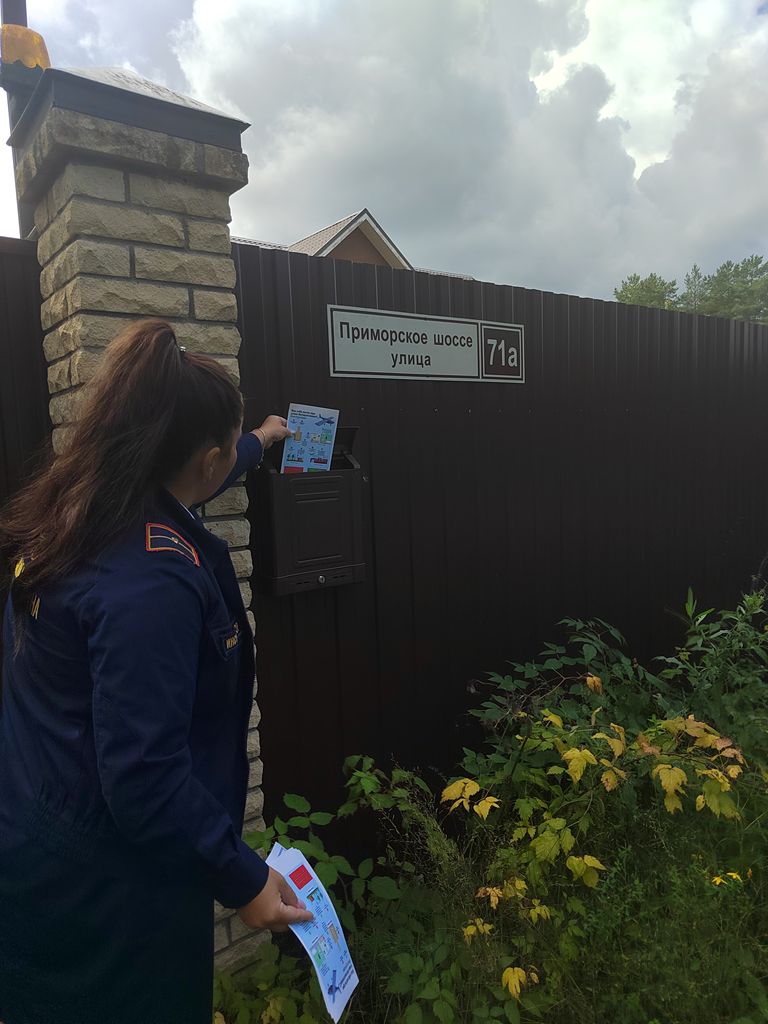 04. 09. 2025 г. Инструктор по противопожарной профилактике Ломоносовского местного отделения ВДПО ЛО Ахмадуллина О.В. провела профилактический рейд в д. Большая Ижора.