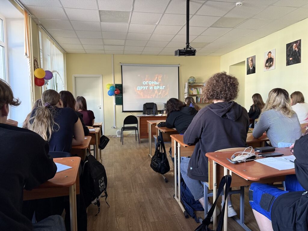 Теоретическая часть плавно перешла в живой диалог с представителем ВДПО, где студенты задавали вопросы интересовались нюансами службы, и делились своими мыслями.