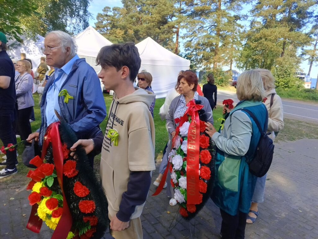 Руководство районной, городских и сельских поселений, ветераны войны и труда, ветераны вооруженных сил и правоохранительных органов, жители Всеволожского района, кадеты учебных заведений почтили память погибших минутой молчания и возложили венки и цветы к мемориалу павших героев. Венок и гвоздики были опущены в Ладожское озеро.