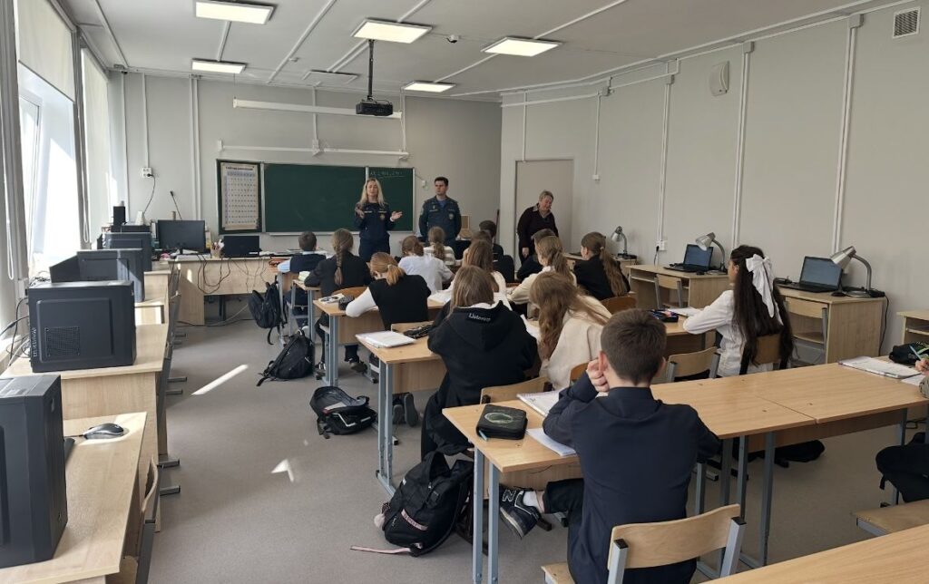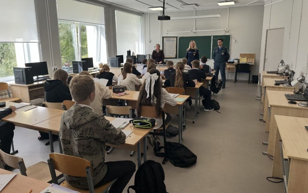 В рамках урока сотрудники отдела надзорной деятельности и профилактической работы Тосненского района и местного отделения ВДПО ЛО поговорили с ребятами о планах работы на учебный год и о перспективах развития.
