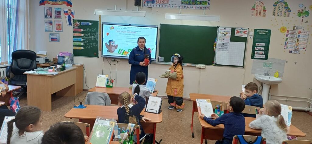 26. 09. 2025 г. Инструктор по противопожарной профилактике Ломоносовского местного отделения ВДПО ЛО Ахмадуллина О.В. провела профилактическое мероприятие для 1 класса Русско-Высоцкой школы.