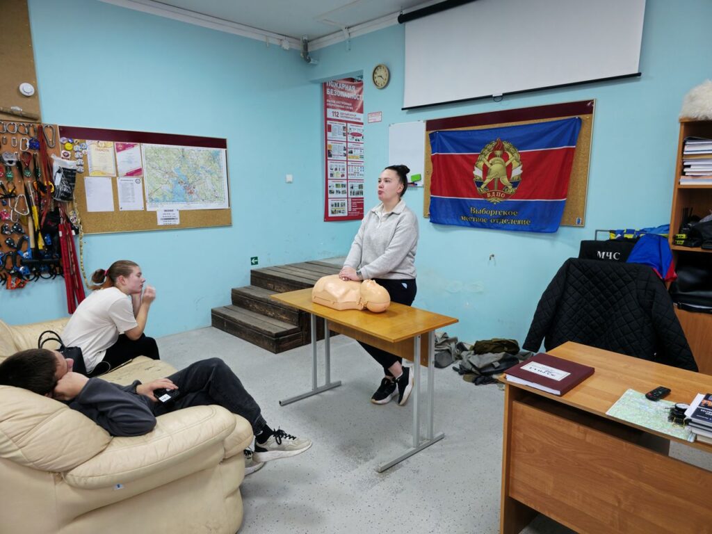 Студенты ГАПОУ ЛО «ВТАЛК» города Выборга и добровольцы Выборгского местного отделения Всероссийского добровольного пожарного общества Ленинградской области провели практический урок по оказанию медицинской помощи по легенде «Прохожий потерял сознание».