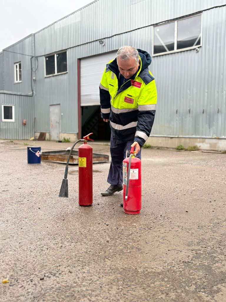 На занятии с членами добровольной пожарной дружины отработали действия при тушении открытого возгорания первичными средствами пожаротушения.
