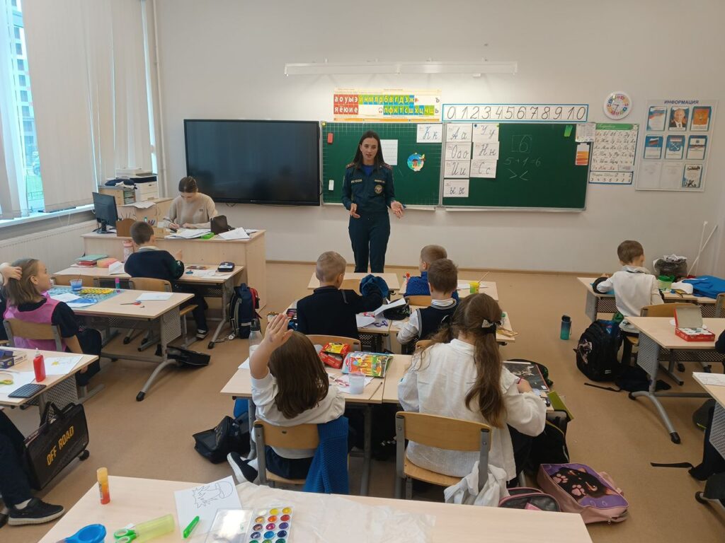 Сегодня инспектор ОНД и ПР Князева Дарья и заместитель председателя совета МО ВДПО ЛО Миклин В.Н. провели беседы со школьниками пяти первых классов Кудровского центра образования № 2. Кроме основных вопросов по правилам пожарной безопасности в школе, дома и на прогулках были доведены до ребят правила безопасного поведения в период осенних школьных каникул. В 1 «В» классе наше выступление совпало с темой, проводимой преподавателем, которая рассказывала ребятам о всех правилах безопасности. А в 1 «Г» классе беседу на противопожарную тему слушали дети и их родители.