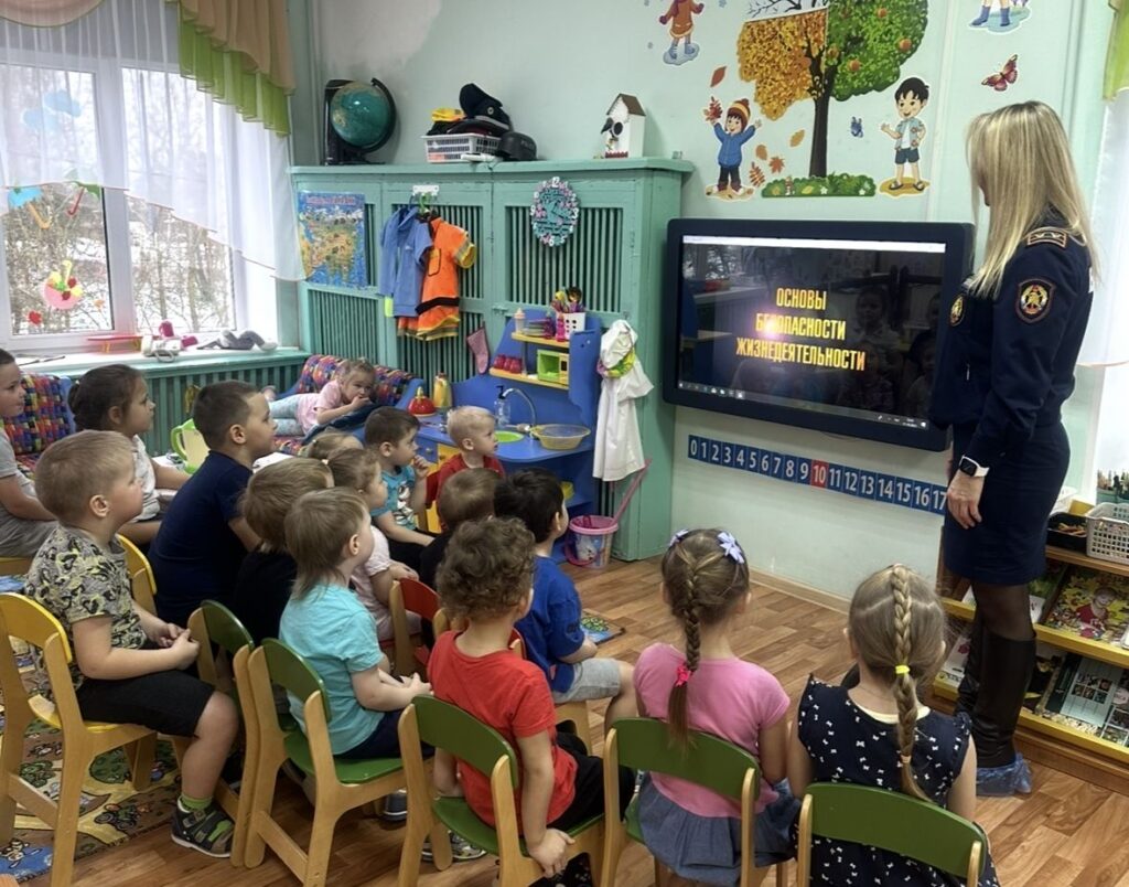 В детском саду № 15 в поселке Тарасово состоялось познавательное занятие по пожарной безопасности, объединившее просмотр тематического мультфильма и подробную беседу. Такое сочетание позволило детям не только увидеть возможные опасные ситуации, но и сразу разобрать их вместе со своими гостями — сотрудниками отдела надзорной деятельности и профилактической работы Тосненского района и местного отделения ВДПО ЛО.