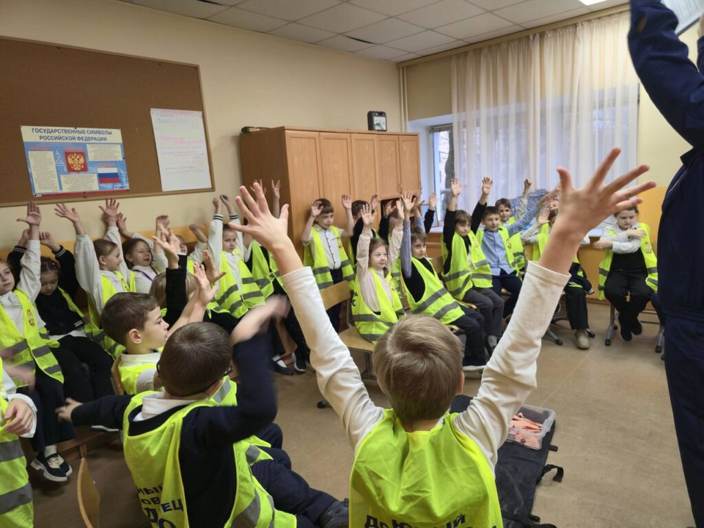 Состоялась важная встреча студентов с учениками 2 «А» класса МБОУ «Гимназия № 11 города Выборга» (Дружина юных пожарных «Пламя»).