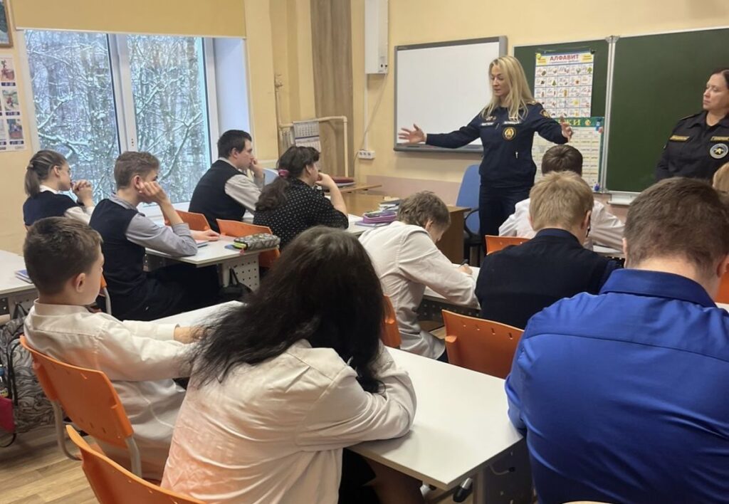 Ребятам из 8 и 9 класса напомнили, что именно в холодное время года возрастает риск возгораний — из-за активного использования печного отопления, электрических обогревателей и газового оборудования. Разговор был построен на разборе ситуаций, которые могут случиться в быту и в общественных зданиях.