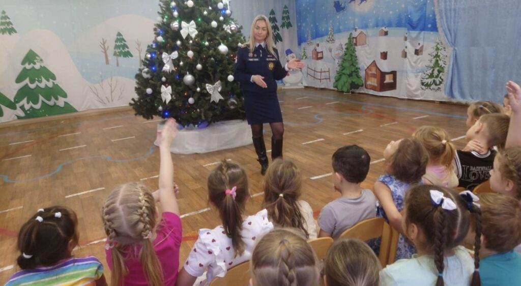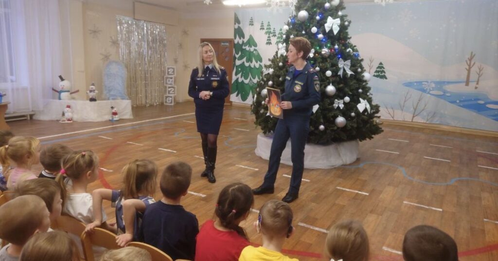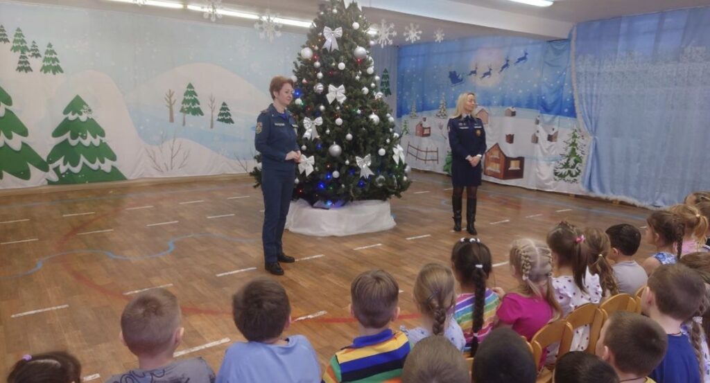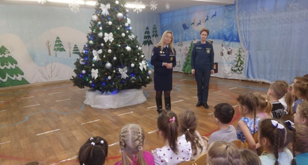 Занятие прошло в большом музыкальном зале, где с помощью установленной ёлки специалисты наглядно показали, как правильно и безопасно её украшать. Такой формат позволил детям лучше запомнить правила и увидеть их применение на практике.