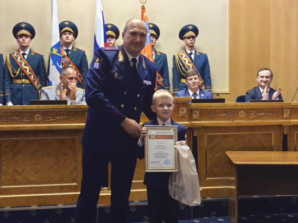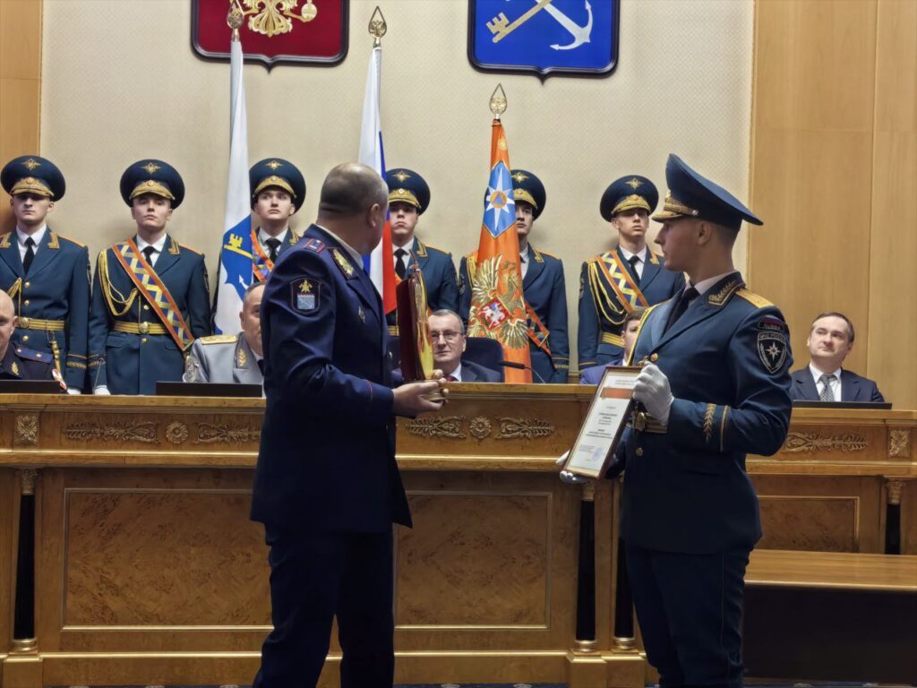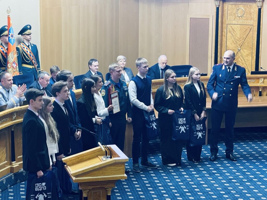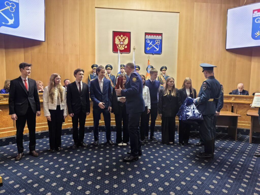 Заслуженную награду получили победители чемпионата России по пожарно-спасательному спорту – команда «Огнеборец» из Низинской школы Ломоносовского района и её тренер – сотрудник Главного управления МЧС России по Ленинградской области Вячеслав Гудилин.