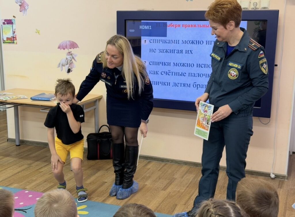 Встреча началась с веселой викторины, в ходе которой ребята с большим азартом вспоминали базовые правила пожарной безопасности. Дети уверенно отвечали на вопросы, называли номера телефонов экстренных служб и рассказывали, как нужно действовать в случае пожара.