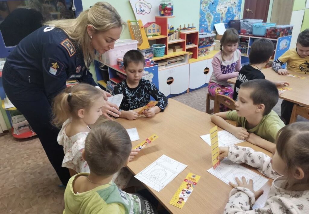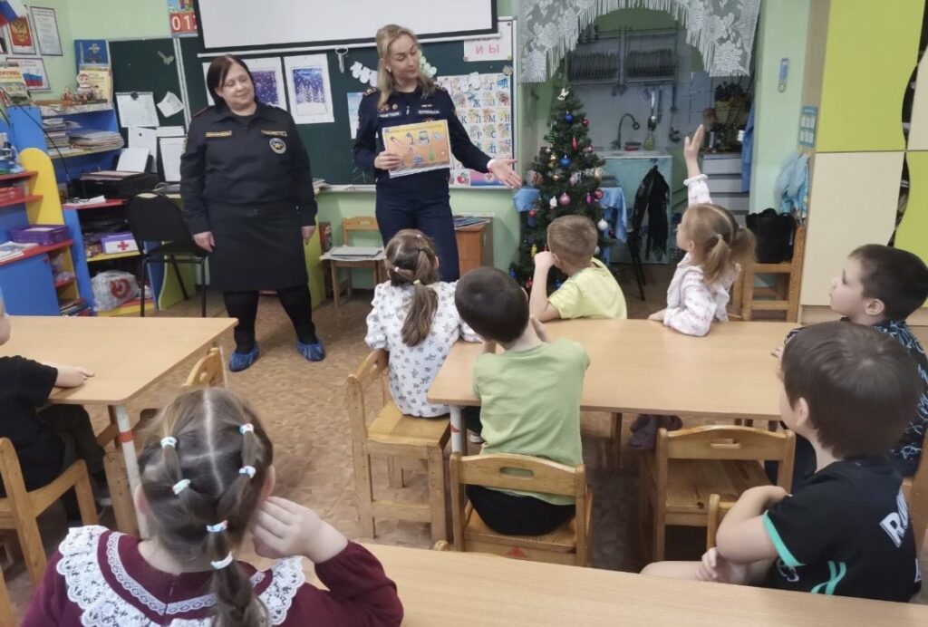 В детском саду № 2 п. Ульяновка для воспитанников подготовительной группы «Непоседы» прошло первое в новом году занятие по пожарной безопасности. Встреча получилась живой и наглядной: сотрудники отдела надзорной деятельности и профилактической работы Тосненского района и местного отделения ВДПО ЛО совместно с инструктором противопожарной профилактики пожарной части № 111 им. Е. В. Рукавишникова предложили ребятам разобраться в теме с помощью ярких картинок и простых примеров из повседневной жизни.