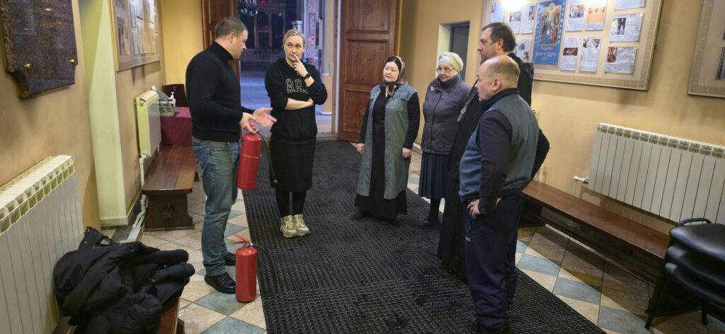 В преддверии празднования Крещения Господня, в храме Спасо-Преображенского собора города Выборга представителем Выборгского местного отделения Всероссийского добровольного пожарного общества Ленинградской области Тарасенковой Д.С. и заместителем командира Выборгского военизированного отряда ООО «Газпром Газобезопасность» Анисенковым П.Г. проведен профилактический урок по правилам пожарной безопасности и правилам пользования огнетушителем.