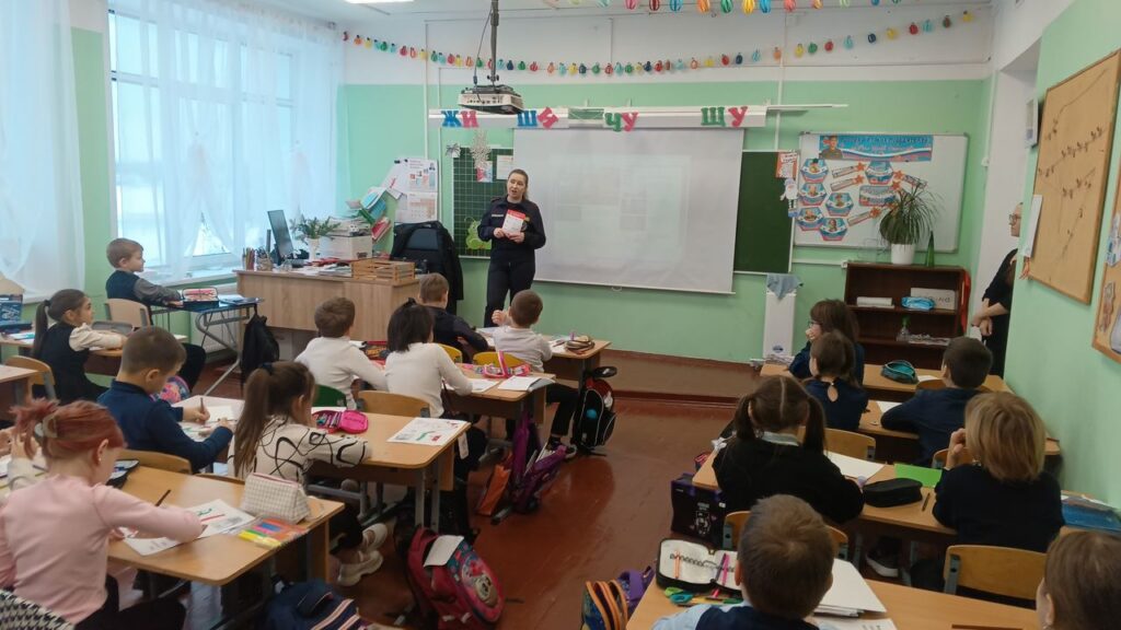 В период проведения Единого Дня безопасности работниками пожарной охраны были проведены занятия в шести начальных классах школы, с охватом 174 учащихся.
