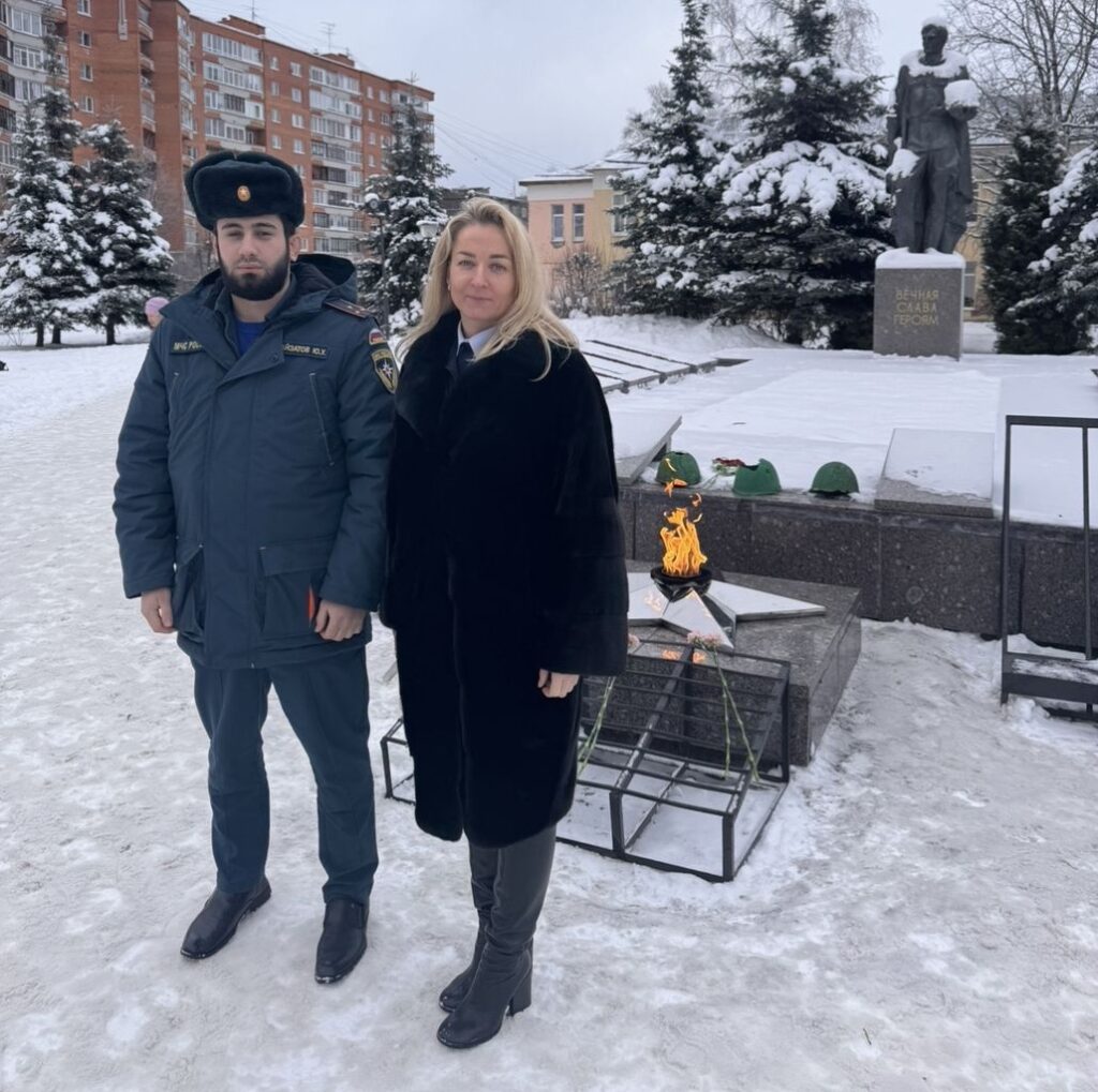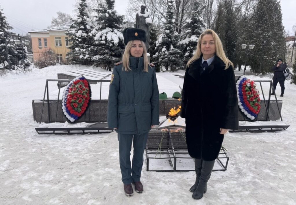 Сотрудники отдела надзорной деятельности и профилактической работы Тосненского района, 86 пожарно-спасательной части и местного отделения ВДПО ЛО возложили цветы у памятника Воину-Освободителю. У подножия памятника они почтили память павших минутой молчания.
