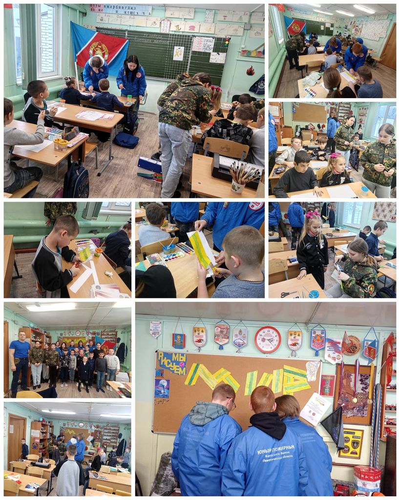 И вот 27 января, в День полного освобождения Ленинграда от фашистской блокады, самые юные воспитанники дружины юных пожарных «Ладога», вместе со своими старшими товарищами, своими руками нарисовали и вырезали этот символ Победы. А из получившихся лент ребята составили слово «МИР»…