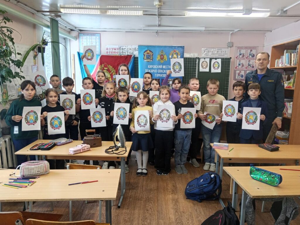 Творческая часть была посвящена геральдике – гербу пожарной охраны Санкт-Петербурга.