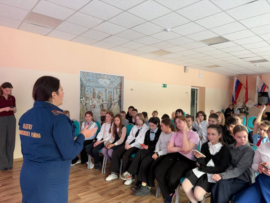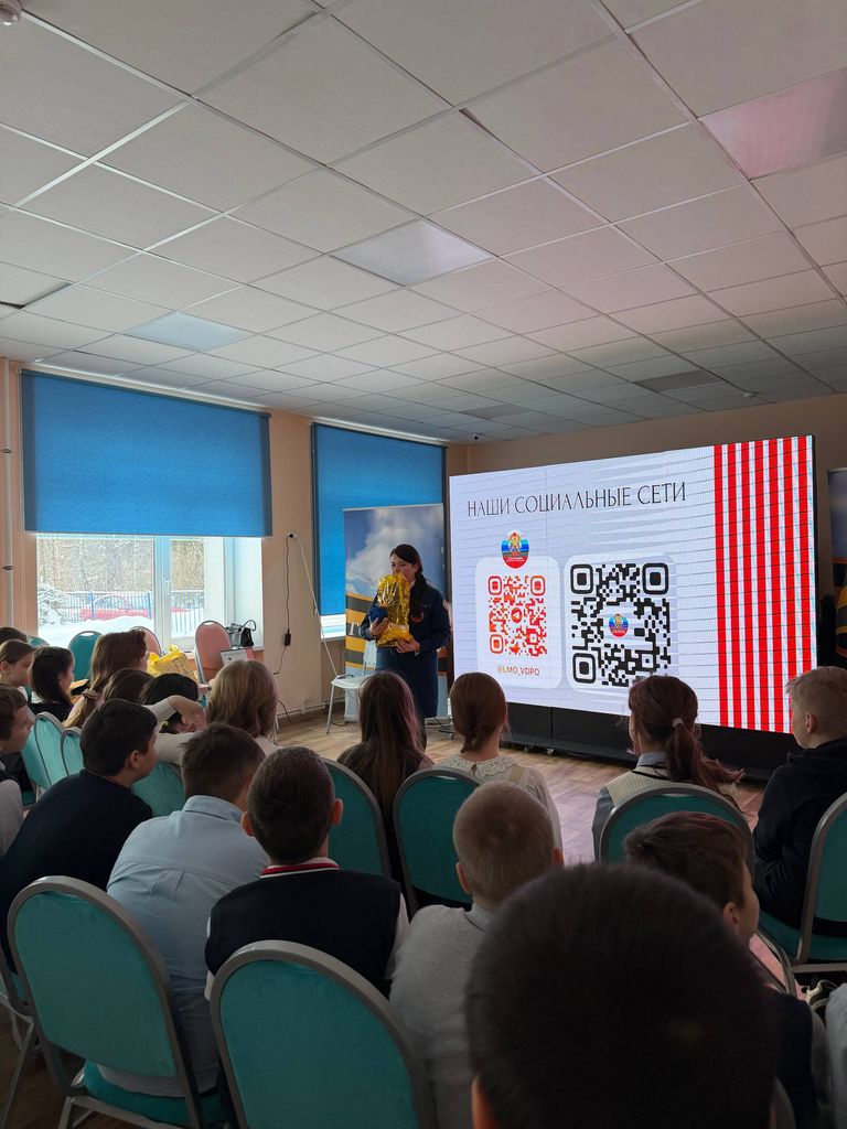 10. 02. 2026 г. Инструктор по противопожарной профилактике Ломоносовского местного отделения ВДПО ЛО Ахмадуллина О.В. совместно со стажером Карповой Анной провели профилактическое мероприятие для учащихся 5 класса Ропшинской школы.
