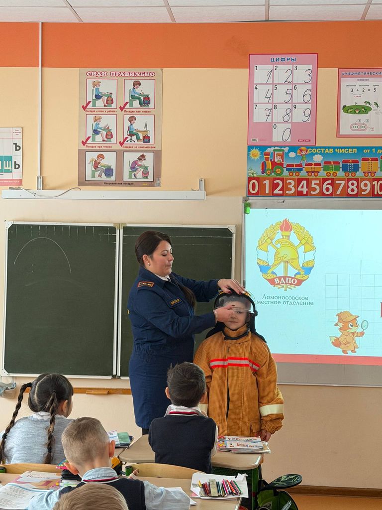 12. 02. 2026 г. Инструктор по противопожарной профилактике Ломоносовского местного отделения ВДПО ЛО Ахмадуллина О.В. совместно со стажером Карповой Анной провели профилактическое мероприятие для учащихся 1 класса Ропшинской школы.