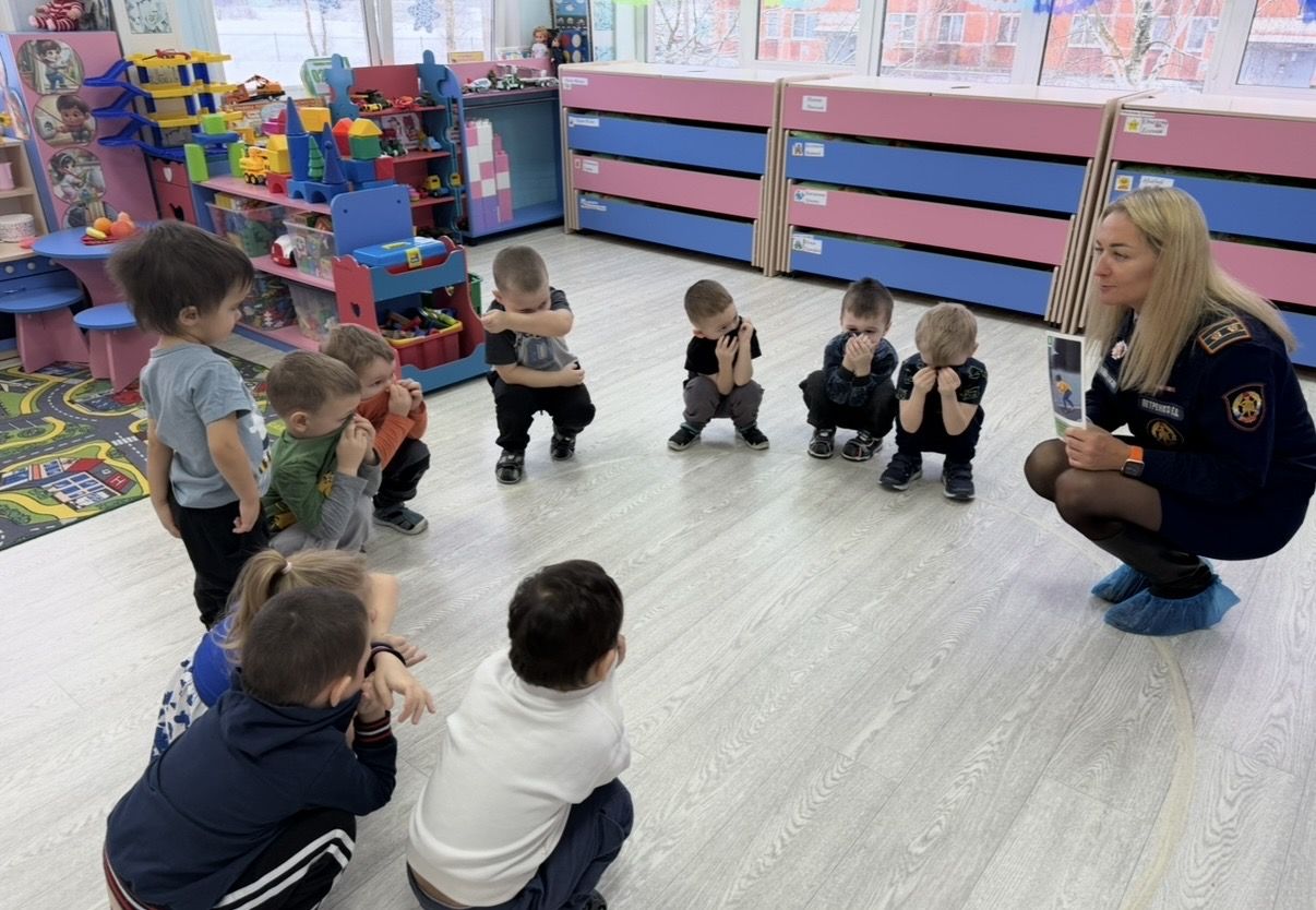 Отдельный акцент сделали на правильных действиях при пожаре. Ребятам напомнили, что в такой ситуации нельзя искать игрушки или прятаться. Самое главное — взять маму или папу за руку и как можно быстрее покинуть помещение.