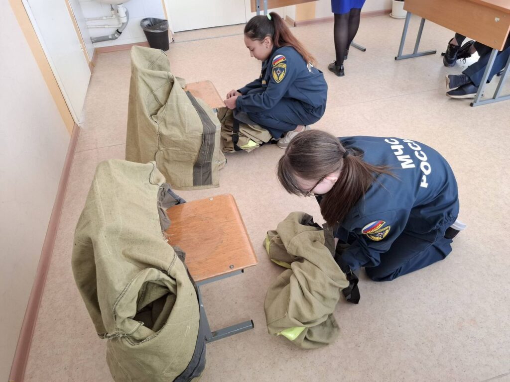 После теоретической части кадеты перешли к практическому заданию — надеванию боевой одежды пожарного.