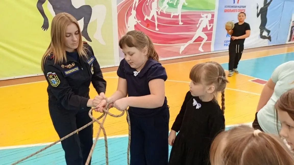 В конце профилактических бесед с ребятами вспомнили один из способов вязания пожарных узлов.
