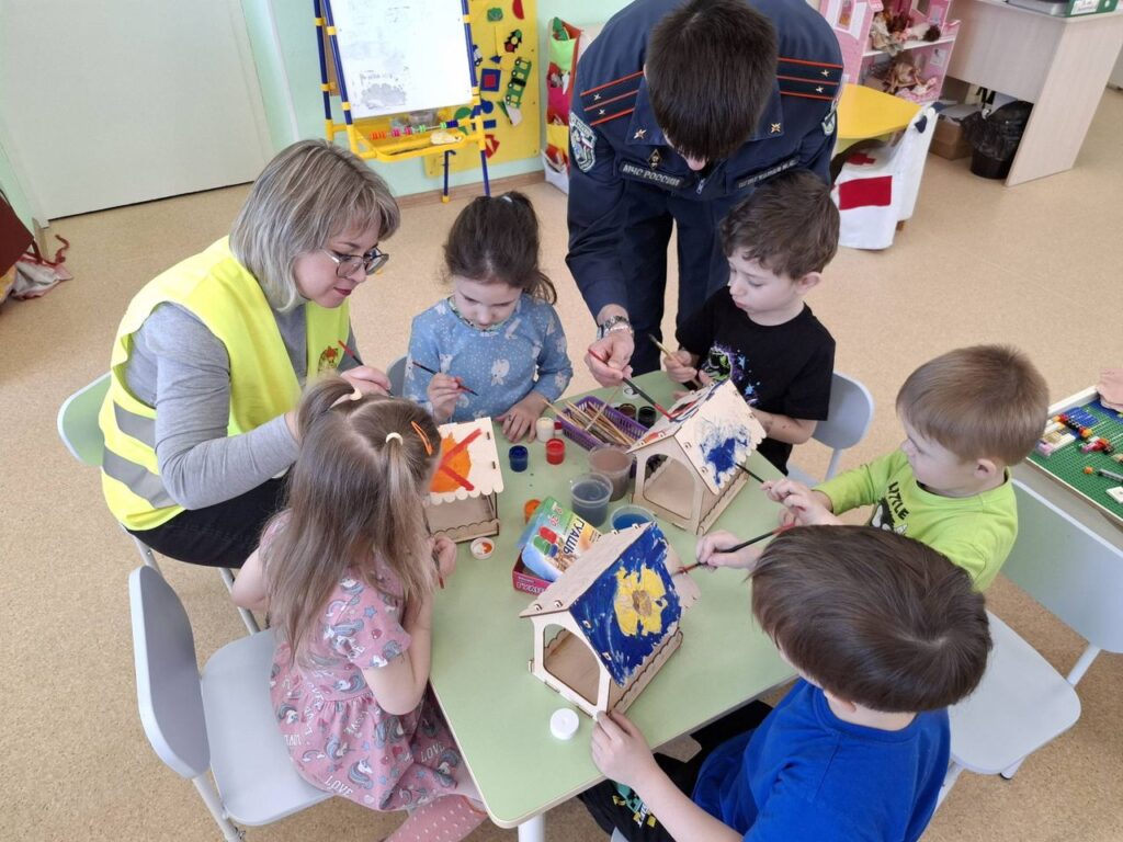 Встреча началась с короткой, но увлекательной беседы. Затем настал самый интересный творческий этап! Детям раздали деревянные заготовки кормушек и птиц, и они приступили к их раскрашиванию.