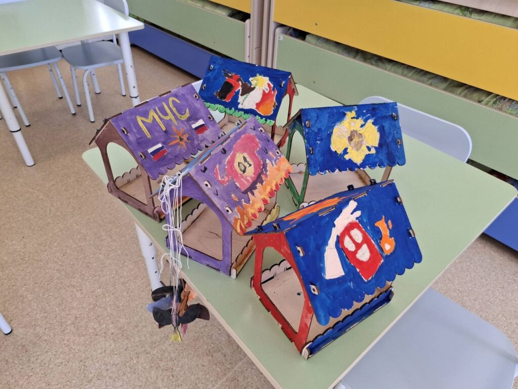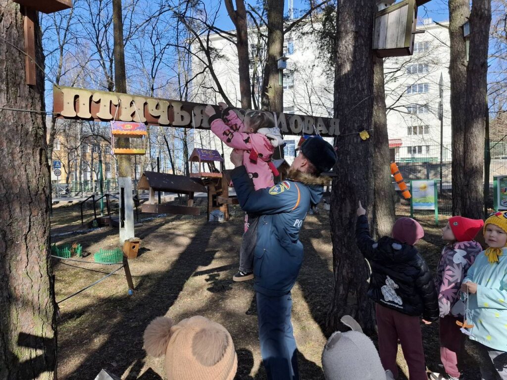 Цель визита была необычной и доброй — вместе с малышами раскрасить и развесить кормушки для птиц.