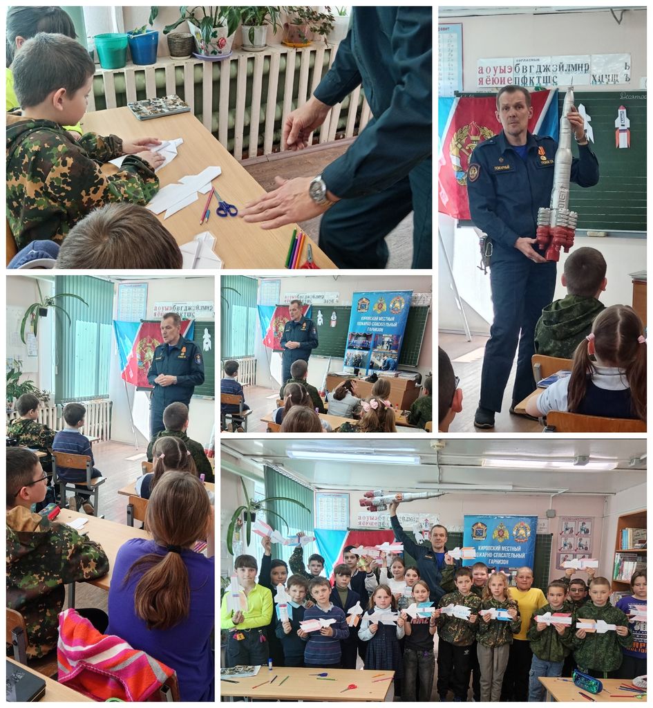 10 апреля на занятии ребята узнали о том, как и кем обеспечивается пожарная безопасность на космодромах при подготовке и запуске космического корабля. Встреча завершилась изготовлением модели космической ракеты в технике оригами.