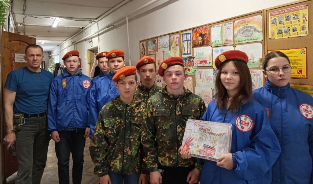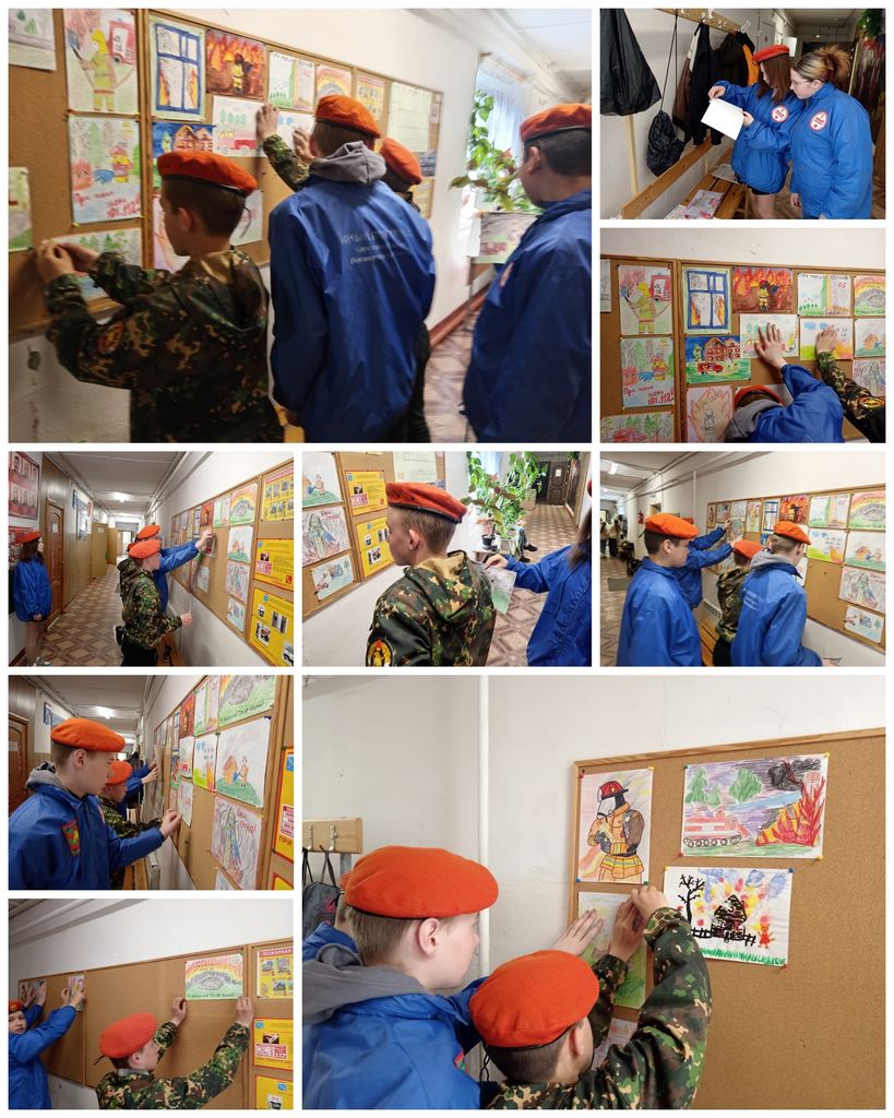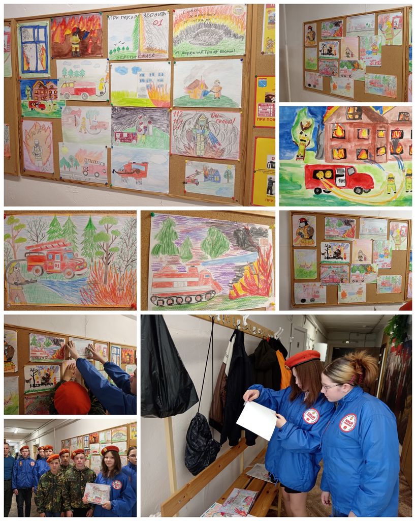 Юные пожарные ДЮП «Ладога» в здании старшей школы закончили оформление выставки рисунков «пожарных гномов» (младшая группа ДЮП «Ладога»).