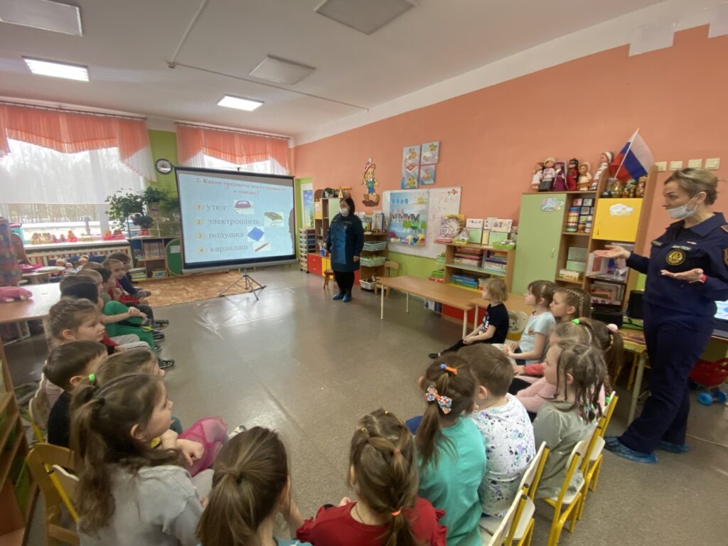 Занятие по пожарной безопасности с детьми детского сада села Русско-Высоцкое Ломоносовского района