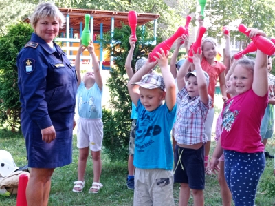Летние группы воспитанников «Солнышко», «Колокольчик» и «Росинка» состязались в спортивной пожарной эстафете (Тосненский район)