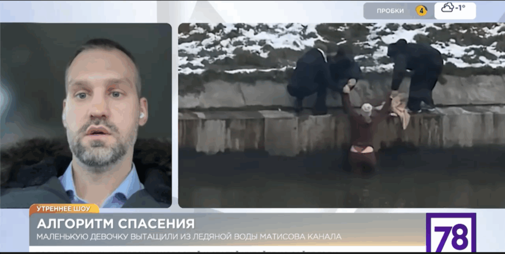 Выступление на 78 канале первого зам. председателя совета Ломоносовского МО ВДПО ЛО Поспелова И.В. по теме оказания первой помощи при переохлаждении и спасению людей из водоемов
